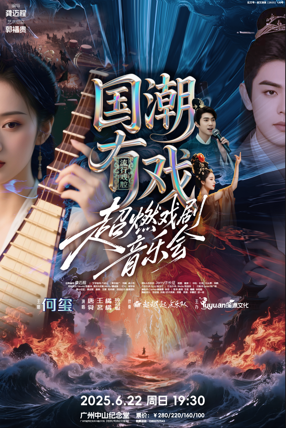 由广州瑜源文化打造的《国潮有戏》超燃国风戏剧音乐会,将于6月22日在广州中山纪念堂上演。这场以“戏剧+音乐”为内核的国风盛宴,集结了戏腔歌手何玺,琵琶演奏家唐舜,原创音乐人王茗、橘橘,舞蹈家刘金迪等艺术家,以及瑜源超越起点乐队,将为观众带来一场跨越千年的文化视听之旅。